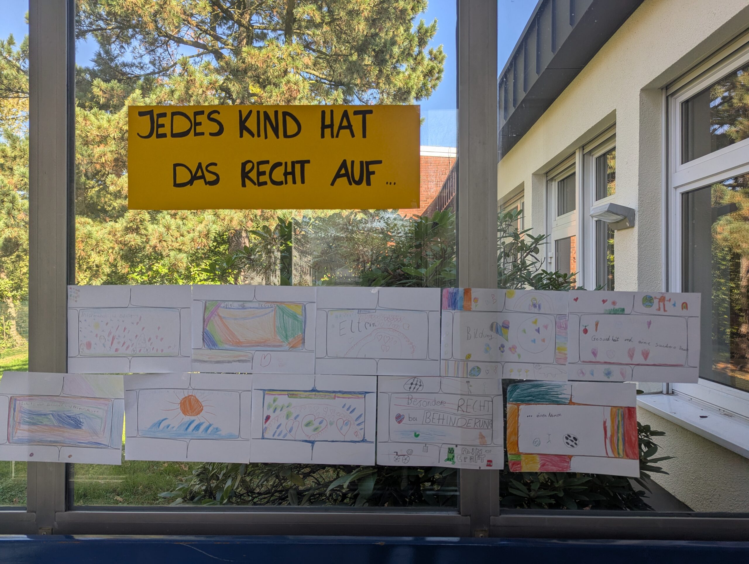 Wir haben die Kinderrechte aufgeschrieben und in unserem Flur der Lindenschule für alle Kinder sichtbar gemacht.