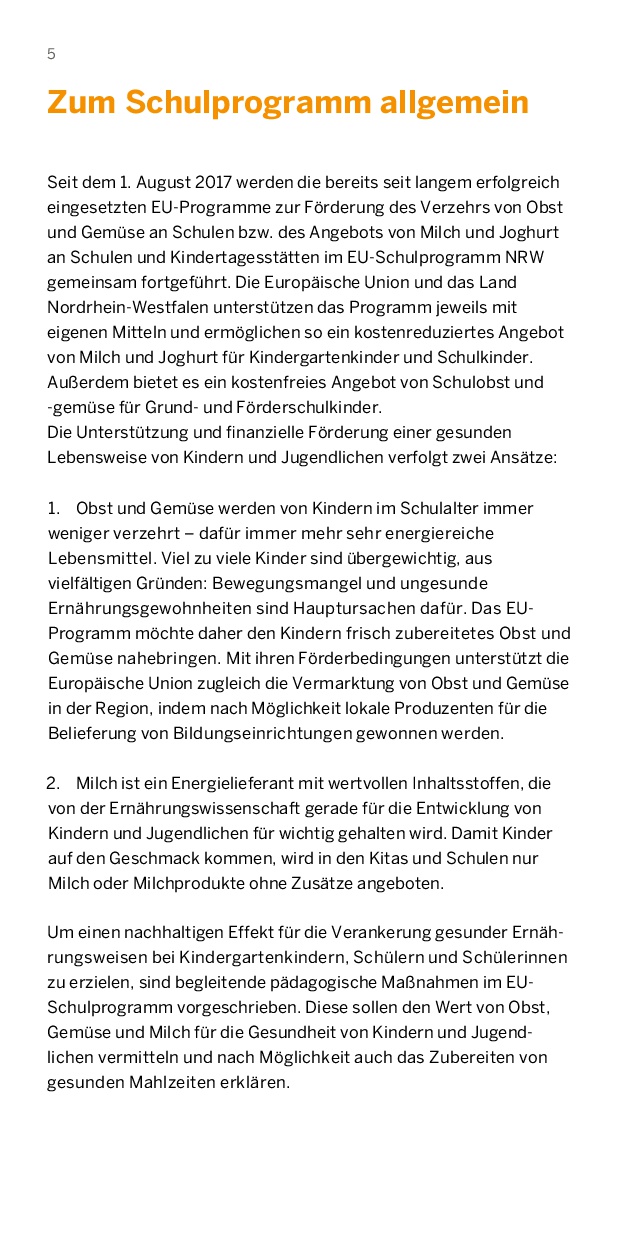 • Das EU-Schulprogramm Nordrhein-Westfalen für Obst, Gemüse und Milch